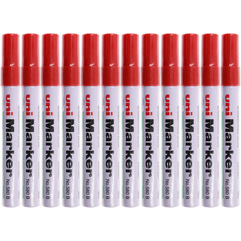 uni三菱 单头油性记号笔马克笔 斜头方嘴大头笔 580B 红色12支装