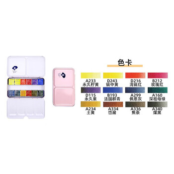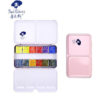 鲁本斯(PaulRubens)12色固体水彩颜料套装清新款便携水粉色彩颜料儿童初学美术生工具-粉色盒010903007