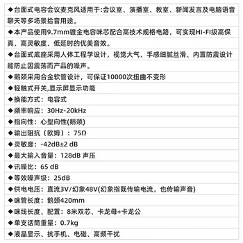 唯舒 YC610-1 有线电容麦克风卡农口卡侬接口会议桌面演讲广播鹅颈款话筒48V供电麦克风可定制接口