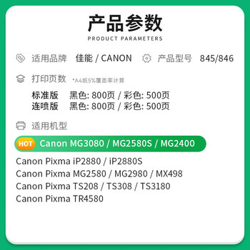 才进佳能PG-845墨盒黑色MG3080 MG2580S 2400 2980打印机再生TS3380 3480 3180 308 208 TR4580 iP2880 MX498