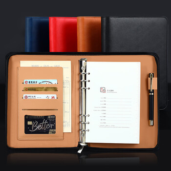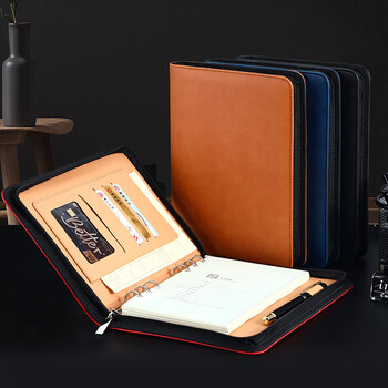 嘉然恒 a5商务活页笔记本子多功能拉链包式记事本可拆卸替换内芯25K简约会议记录本工作日记本可定制 棕色