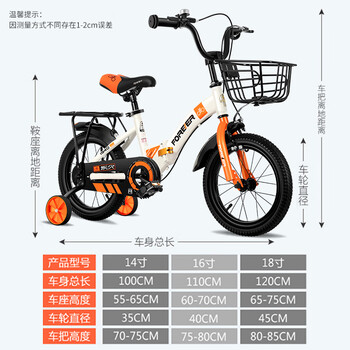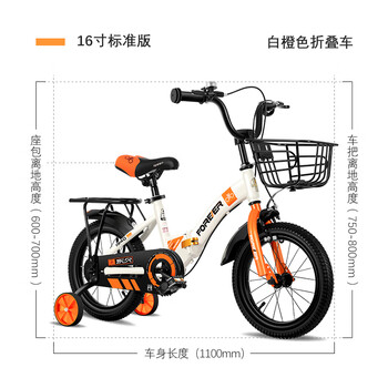 永久(FOREVER)儿童自行车男女款小孩单车可折叠脚踏车4-6-8-10岁辅助轮16寸橙色