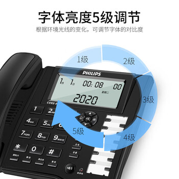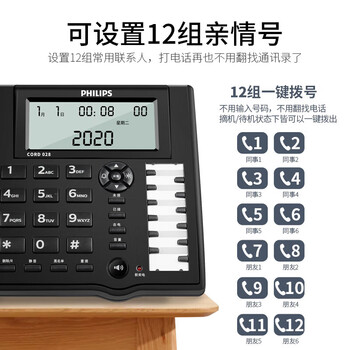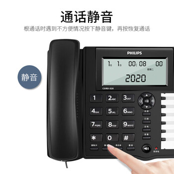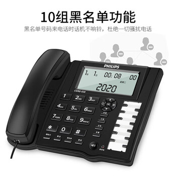 飞利浦(PHILIPS)酒店前台电话机座机/公司办公室桌面黑名单双插口一键拨号固定电话 CORD028(黑色)