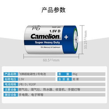 飞狮(Camelion)碳性电池 干电池 R20P/D/大号/1号 电池 4节 燃气灶/热水器/收音机/手电筒