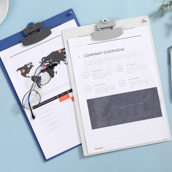 齐心(Comix)A4书写板夹 全塑胶强力夹竖式塑料文件夹 多功能写字垫板 办公用品 灰蓝色A7688