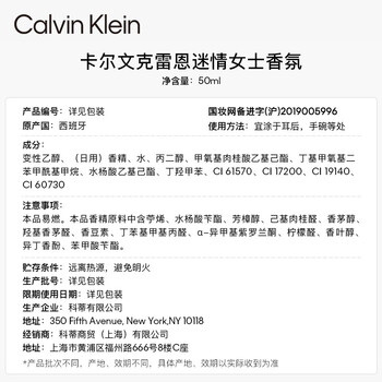 Calvin Klein ck香水 谜情女士香水女50ml 生日礼物节日礼物送女友老婆闺蜜