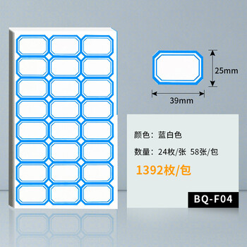 HAILE不干胶标签纸姓名贴39*25mm口取纸 24枚/张 58张/包BQ-F04 蓝色
