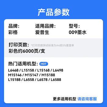 彩格适用爱普生009墨水EPSON L15158 L15168 L6558 L6578 L15188 L6498 L6468打印机墨水红黄蓝彩色套装