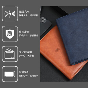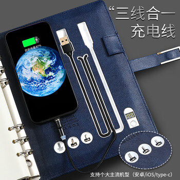 嘉然恒 充电笔记本本子礼盒A5商务活页本记事本多功能移动电源本有线无线充电本送礼品可定制 棕色