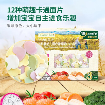 爷爷的农场有机婴幼儿片片面200g 宝宝辅食婴儿面条钙铁锌儿童早餐6-12个月