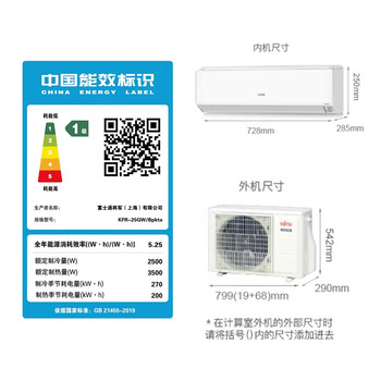 | 内机机身尺寸 | 高250mm;深285mm;宽728mm |