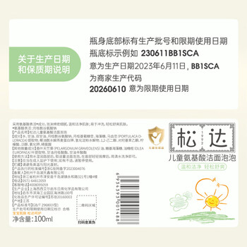 松达儿童氨基酸洁面泡泡儿童洗面奶宝宝护肤洁面乳【面部清洁】100ml