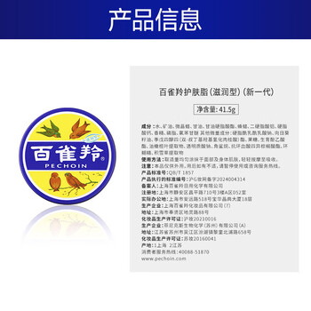 产品(注册/备案)名称 百雀羚护肤脂(滋润型)(新配方)