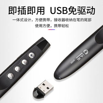 汉王(Hanvon)A100一体式便携PPT翻页笔 激光笔 年会遥控投影笔 电子教鞭笔 黑色 红光