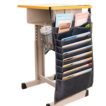 得力(deli)(deli)挂书袋课桌书挂袋 升级款交叉收纳书桌挂袋 书袋 学生书本收纳神器 加厚款 灰色开学必备