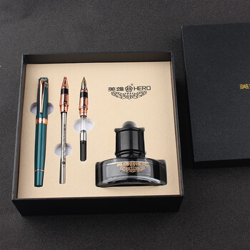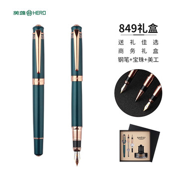 英雄(HERO)钢笔 礼盒849墨绿色三件套(铱金笔+宝珠+美工)办公礼品墨水礼盒套装