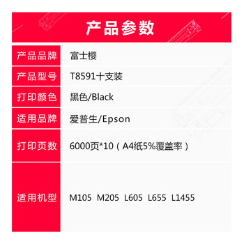 富士樱M105黑色颜料墨水 859墨水10支装 适用爱普生M105/M205/L605/L655/L1455 T859打印机墨盒
