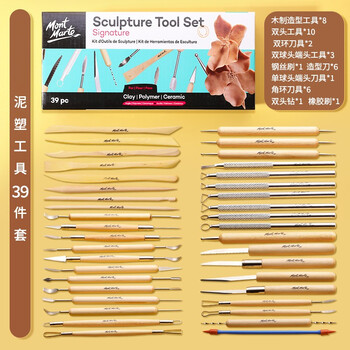 蒙玛特(Mont Marte)陶泥工具39件 软陶泥塑雕刻刀精雕粘土石塑陶艺刀套装木泥塑刀软泥儿童diy工具V MMSP0028