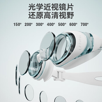 李宁(LI-NING)泳镜女士高清防雾游泳镜男士成人近视泳镜泳帽套装55-808白 300度