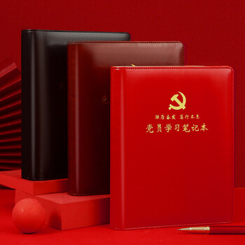 嘉然恒 党员学习笔记本2024年款25K党史党建工作学习本活页款A5党课党务党支部会议记录本可定制 红色