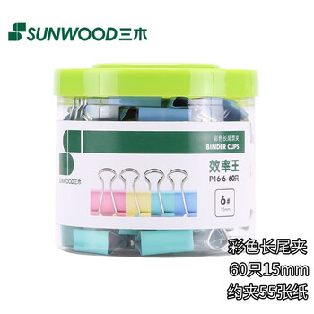 三木(SUNWOOD)效率王系列 60只15mm 6#彩色长尾夹/金属票据夹/燕尾夹 P16-6