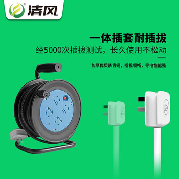 清风(kyfen)家用迷你移动式电缆卷盘四位长线插排过热保护 全长15米
