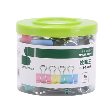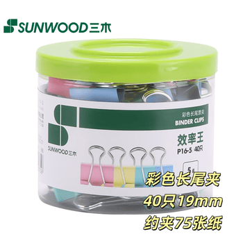 三木(SUNWOOD)效率王系列 40只19mm 5#彩色长尾夹/金属票据夹/燕尾夹 P16-5