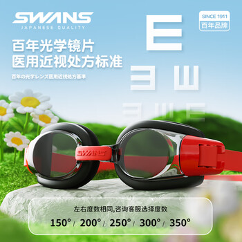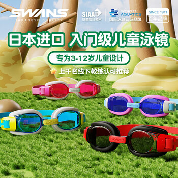 SWANS儿童泳镜日本进口男女童防水防雾高清大框游泳眼镜专业SW29黑红