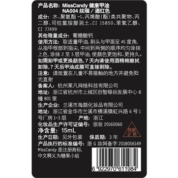 Miss Candy水性可剥指甲油 健康美甲 丝瑞/酒红色 NA004