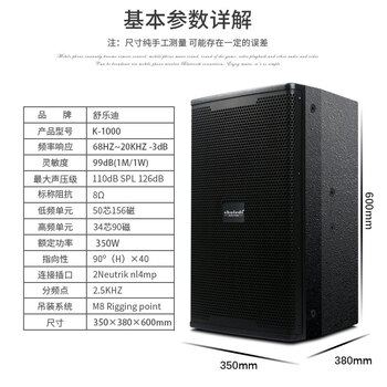 舒乐迪(shuledi)K-1000国产化会议音箱音响 大型会议室音响 木质壁挂音响 酒店背景音乐培训教学包安装12英寸单支