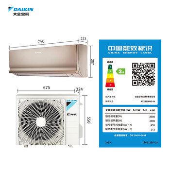 大金(DAIKIN)空调 E-MAX7系列 大1.5匹 2级能效 变频冷暖 康达无感气流 挂机 ATXS236WC-N 金色