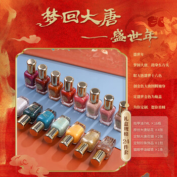 MissCandy糖果小姐健康指甲油套装快干持久可撕拉免烤美甲国风礼盒7ml*16 梦回大唐礼盒/SN243*1