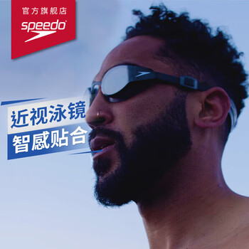 速比涛(Speedo)可定制左右不同近视度数防雾近视泳镜游泳训练 黑色/烟灰色 550度