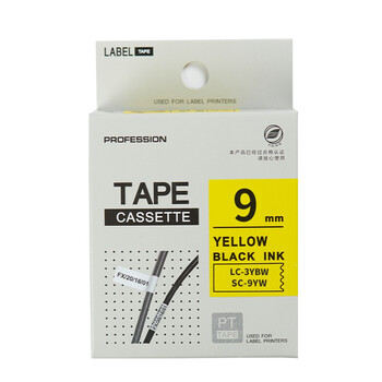 绘威 SC9YW标签色带 不干胶标签纸标签带覆膜标签 适用爱普生/锦宫标签打印机 黄底黑字9mm*8m