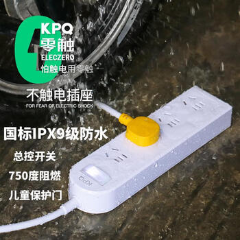 KPQ零触KPQ不触电插座IPX9级防水过载短路保护插排户外防雨排插厨房浴室防潮儿童防触电DF04全长3米
