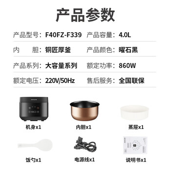 整机、饭勺、量杯、蒸笼、电源线、说明书