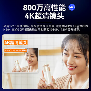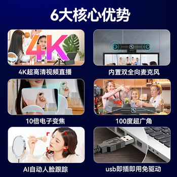 HIKVISION海康威视直播摄像头4K超高清100°广角镜头内置双麦克风USB视频会议网红带货直播D5ACAM100D