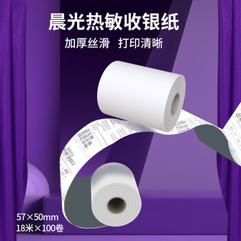 晨光(M&G)紫晨光 18m热敏收银纸 银联刷卡机打印纸 57*50mm移动点单热敏纸 100卷/箱APYUX56J