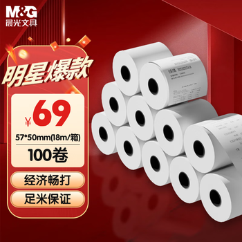 晨光(M&G)文具18m热敏收银纸 银联刷卡机打印纸 57*50mm移动点单热敏纸 100卷/箱APYUX56J