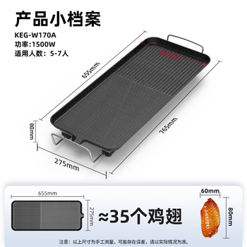 康佳(KONKA)电烧烤炉 家用多功能烤肉锅电烤盘 无烟烧烤炉电烤炉烤串机电烤锅烤肉机 KEG-W170A