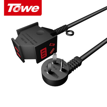 TOWE同为10A三插一转三加长电动车充电插座插线板/插排/工程地拖摔不烂插座 1.0平 10米