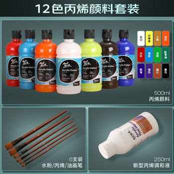 丙烯颜料500ml常用12色*1+6画笔*1+250ml调和液*1