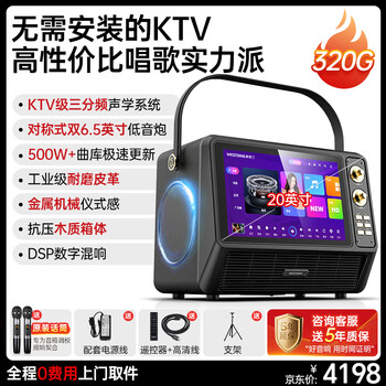 威斯汀ktv音响家庭k歌一体机 卡拉ok点歌机显示屏 户外便携广场舞蓝牙音箱GLE320-320G家用版