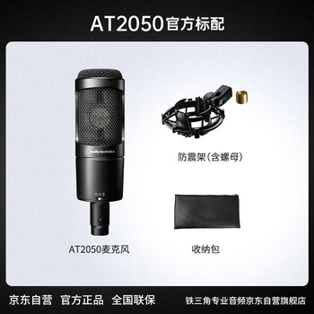 铁三角AT2050 多指向性电容麦克风专业级直播K歌录音配音专用话筒支架套装 配卡农线