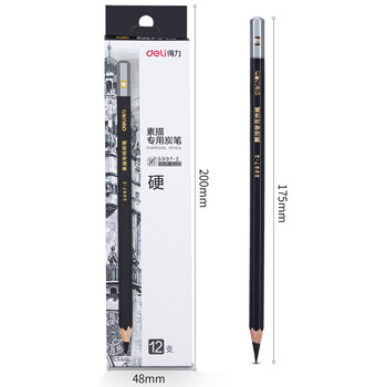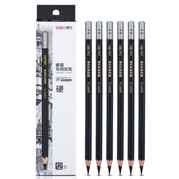 得力(deli)12支/盒硬炭素描炭笔初学者碳笔软中硬绘画美术生专用S997-2绘画勾线
