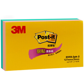 3M 便利贴 报事贴/便条纸/便签纸/便签本 办公用品 两本混色装大号长方形127×76mm狠贴655S-2pk 蓝绿色杏粉色