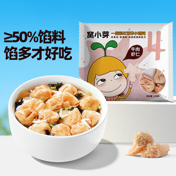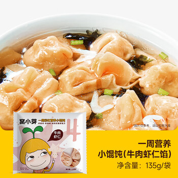 窝小芽 一周营养小馄饨饺子儿童早餐食品零食135g(牛肉虾仁)