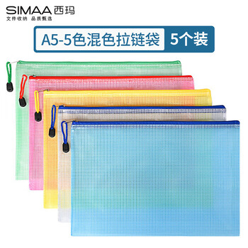西玛(SIMAA)5只A5文件袋科目分类拉链网格拉链袋塑料高考文具袋考试收纳专用袋试卷袋6789