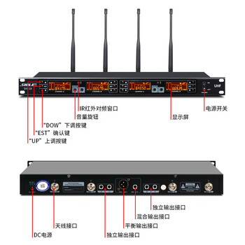 狮乐(SHILE)SH-10专业一拖四U段防啸叫无线手持话筒 KTV娱乐唱歌会议主持演讲手拿麦克风 配4手持