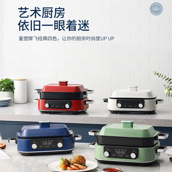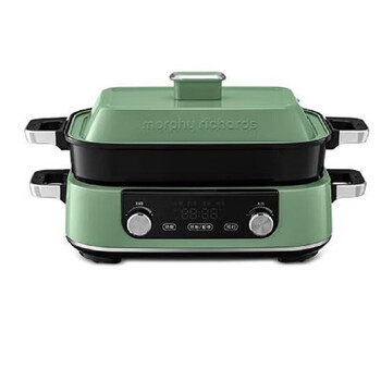 morphyrichards 二代多功能锅多用途料理锅电火锅烤肉锅 涮蒸煮炒煎烤一体电炒锅电煮锅MR9099绿
